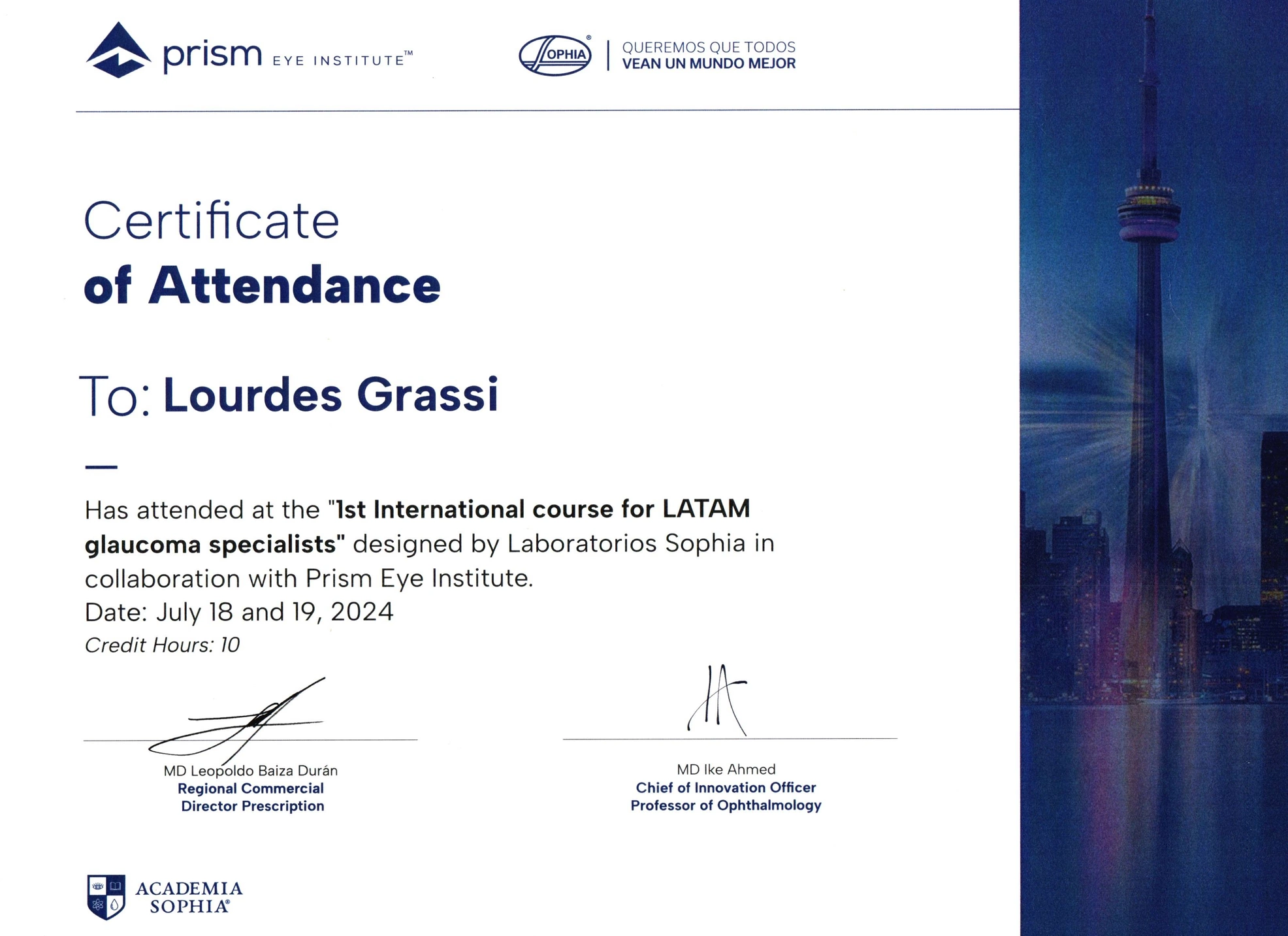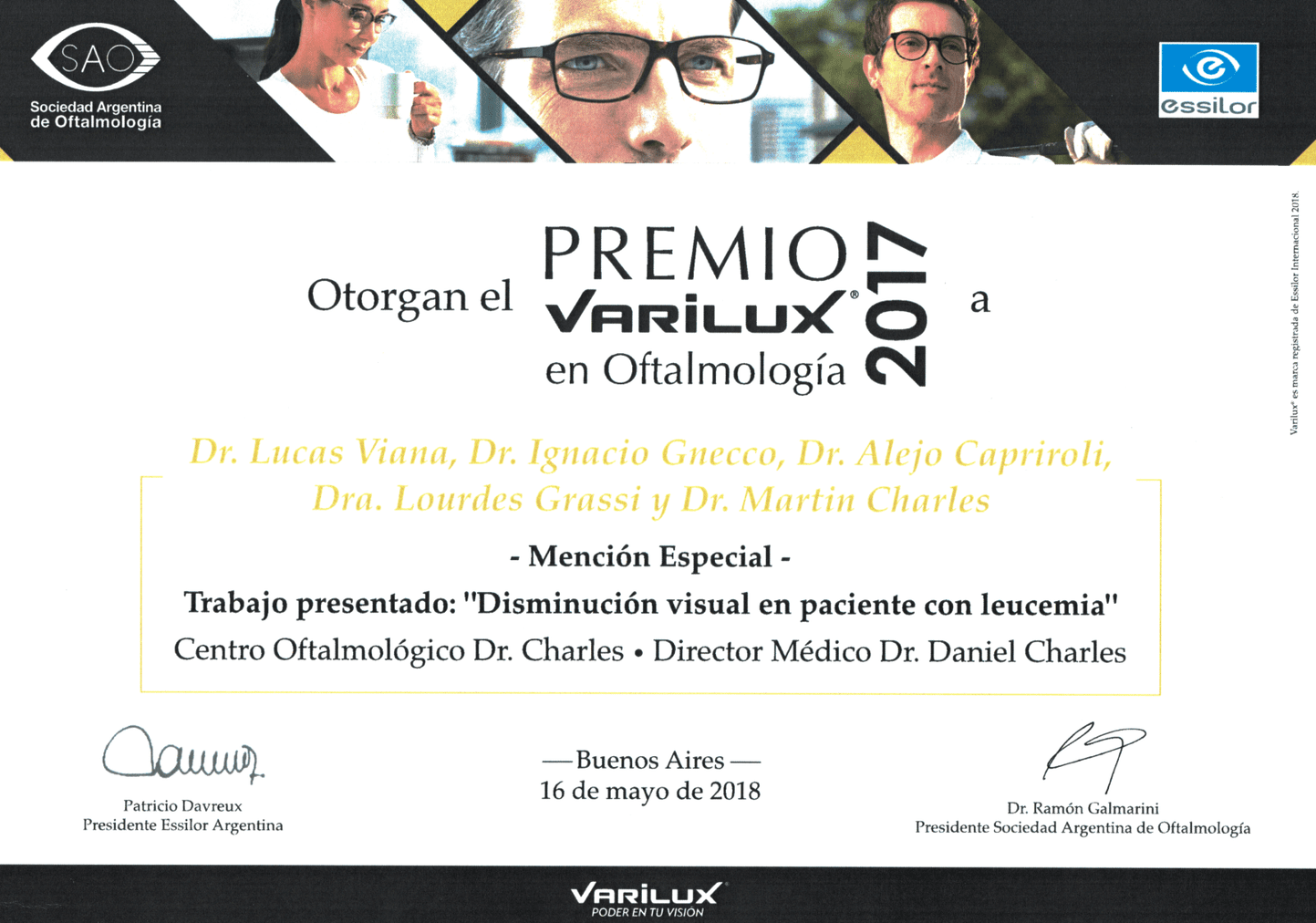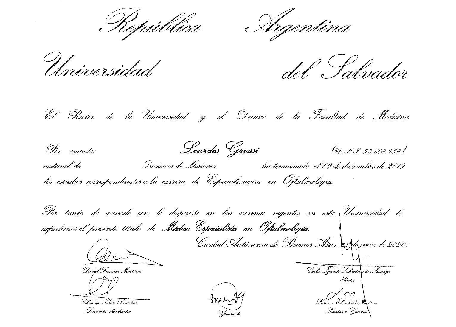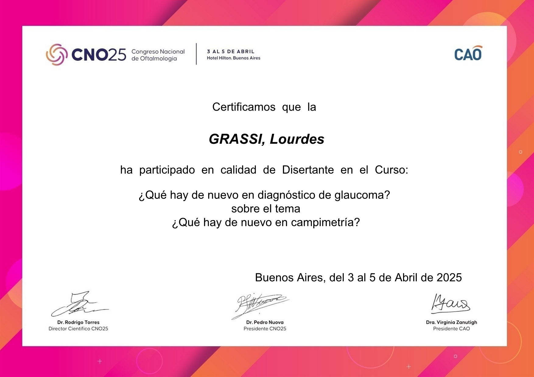 Graduated from Medical School from the University of Buenos Aires (UBA). Completed the three-year residency program in Ophthalmology at Charles Ophthalmological Center, while obtaining the Ophthalmology degree from University del Salvador. Once the residency was completed, I continued working at Charles Ophthalmological Center as chief resident and simultaneously worked as a helper in the consulting room with Dr Martin Charles in clinical retina.